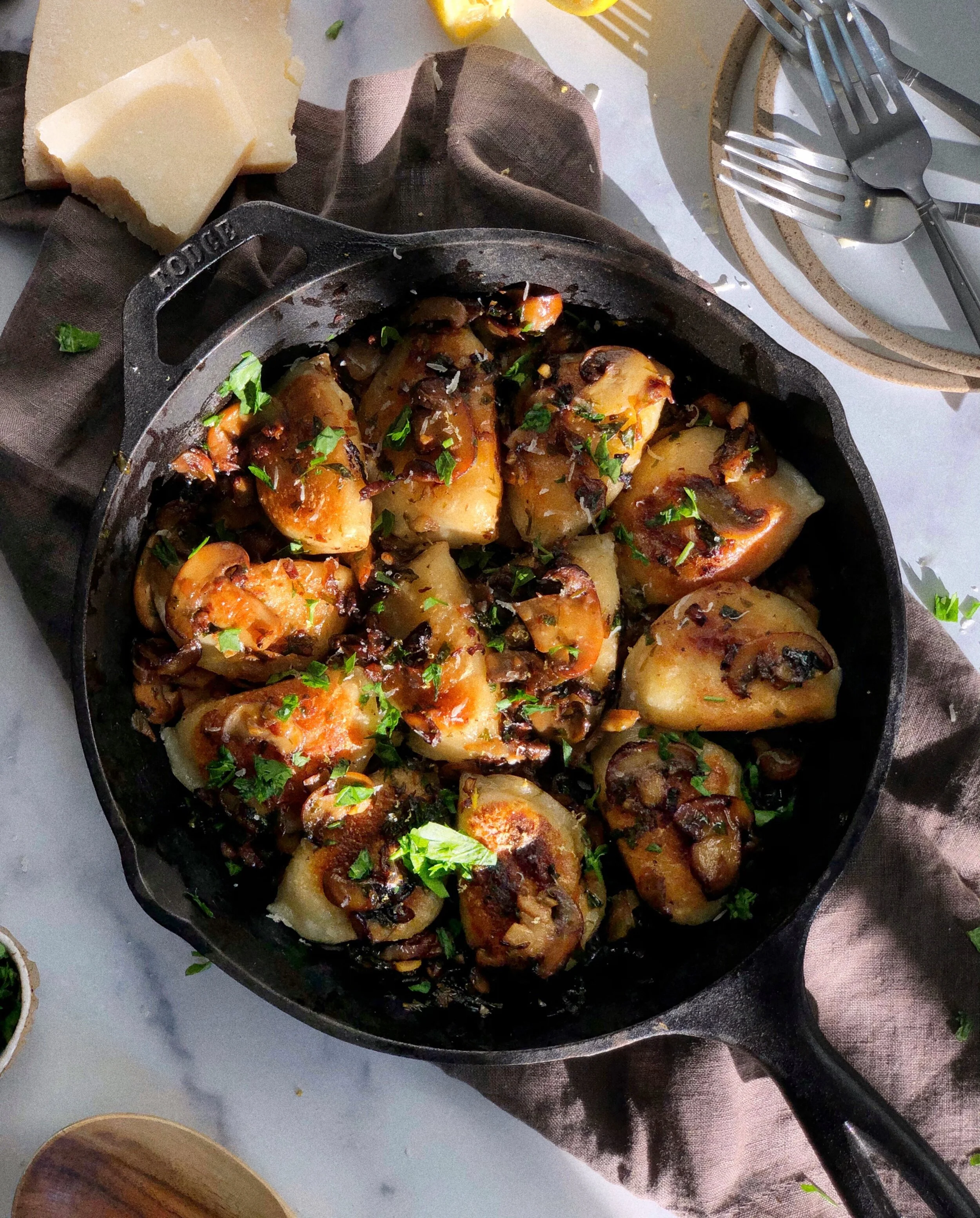 Lemon and Mushroom Pierogi Skillet